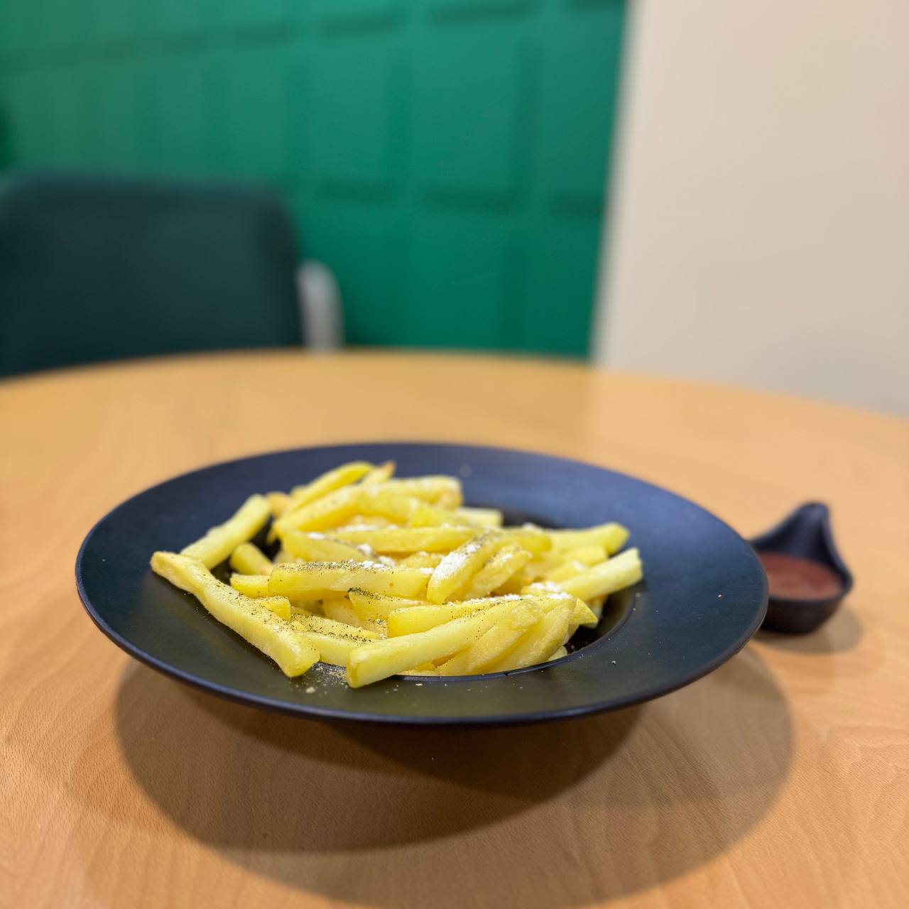 یک عدد شنیسل مرغ + چهارعدد توپک پنیری + سیب زمینی سرخ شده